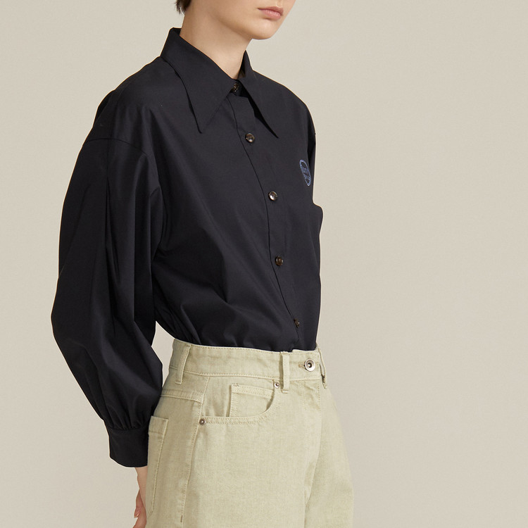 束口灯笼袖纯棉衬衣(深藏青色)Shirred-sleeve Cotton Shirt [DARK NAVY]