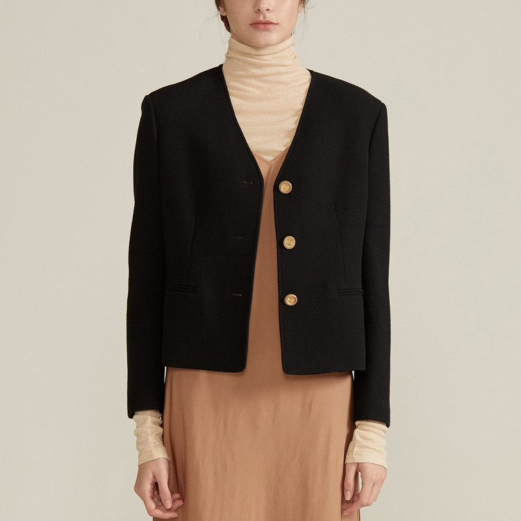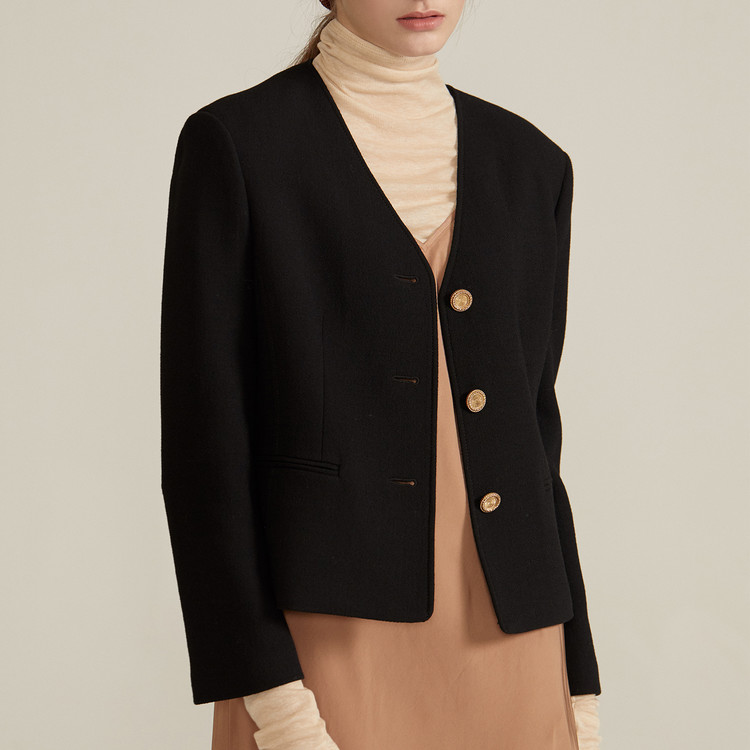 经典V领小香风羊毛短外套[黑色] CLASSY JACKET [BLACK]