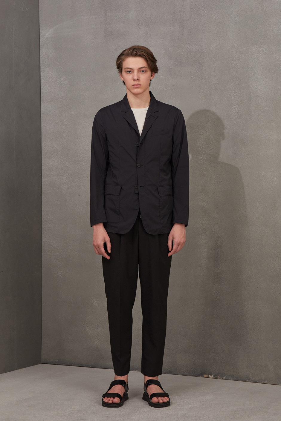 깔끔한 솔리드 컬러의 집업과 단추로 여미는 타입이며 적당한 레귤러 핏으로 착장하기 좋은 자켓입니다.